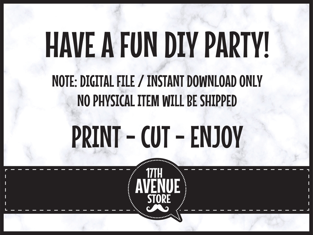 All designs on this listing are originally created by and property of 17th Avenue Store. This file is for PERSONAL USE only. You can print as many times as you need to create your own dream parties. However, it is not to be used for commercial purposes. You may not copy, share, sell or distribute the file in any form or in any way. Selling this in printed form is also prohibited.
